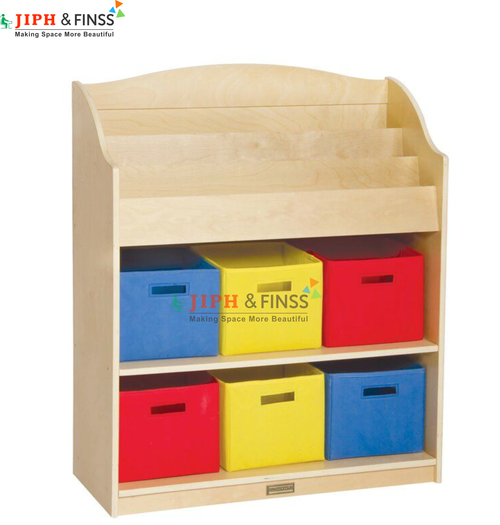 The KST-09 Kids Storage Unit combines open shelves with colorful bins for storing books, toys, and classroom supplies.