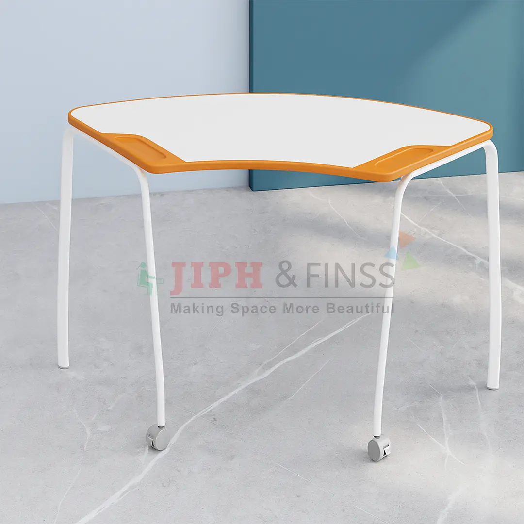 Scholar-202 is a smart, modular classroom desk designed for flexible and collaborative learning environments. Its curved tabletop design encourages interaction, while smooth laminated surfaces and vibrant edge detailing give it a modern classroom appeal. Equipped with caster wheels, Scholar-202 allows easy movement and quick reconfiguration, making it ideal for dynamic learning spaces, activity-based classrooms, and training institutes.