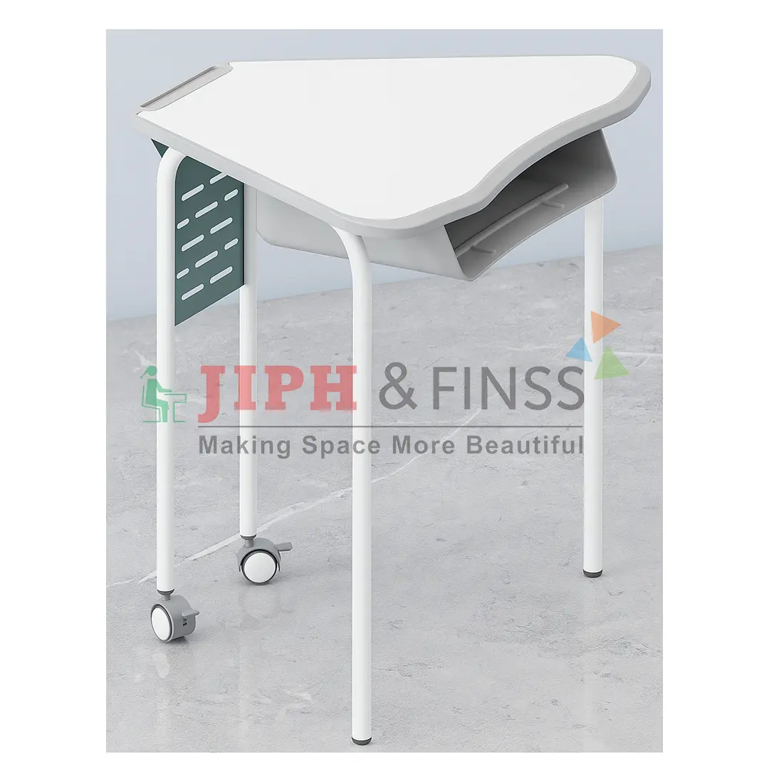 Scholar-207 is a modern modular classroom desk designed for flexible and dynamic learning environments. Its unique triangular shape supports collaborative seating layouts, while integrated storage and caster wheels allow easy movement and quick reconfiguration. Built with a powder-coated steel frame and a laminated top, seat, and backrest, Scholar-207 combines durability, comfort, and contemporary classroom aesthetics.